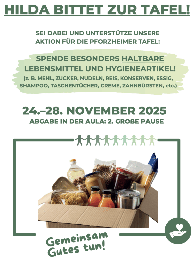 In Zeiten, in denen viele Menschen auf Unterstützung angewiesen sind, ist es wichtiger denn je, gemeinsam aktiv zu werden. Die Tafeln kämpfen darum, einer wachsenden Zahl von Bedürftigen gerecht zu werden, während die Spendenbereitschaft abnimmt. Um in dieser Situation ein Zeichen der Solidarität zu setzen, organisieren wir erneut die Spendenaktion „Hilda bittet zur Tafel“, bei der wir sowohl Lebensmittel als auch Hygieneartikel sammeln.