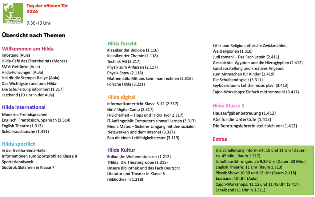 nur am Samstag,07.02.2026 per Einwurf der Unterlagen in den Briefkasten des Hilda Gymnasiums.