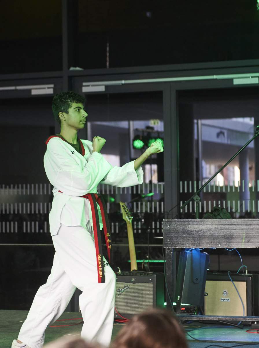 Zur Begrüßung des Cultur-Café-Abends spielte die Jazz-Band einige Lieder und sorgte so für eine gemütliche Atmosphäre. Ob auf dem Klavier oder durch Gesang: Im Laufe des Abends wurden einige Musikstücke vorgetragen. Die Moderatorinnen führten mit sowohl Schüler*innen als auch Lehrer*innen Spiele durch, in denen Wissen über die Musikgeschichte oder Liedtexte überprüft wurden. Weitere Acts präsentierten ihre Tanzchoreografien und zeigten so neue Seiten von sich. Erheitert wurde das Publikum durch eine Comedy-Einlage und durfte zum Schluss einem Gitarrensong lauschen.