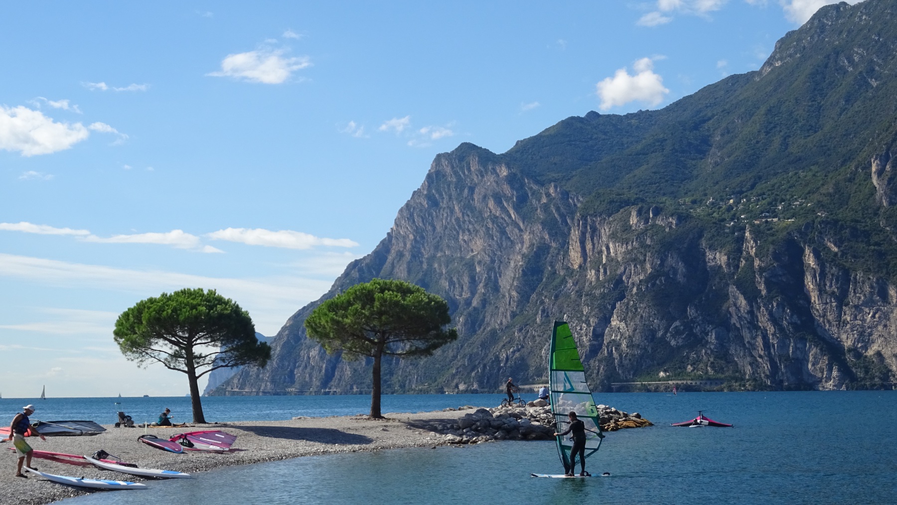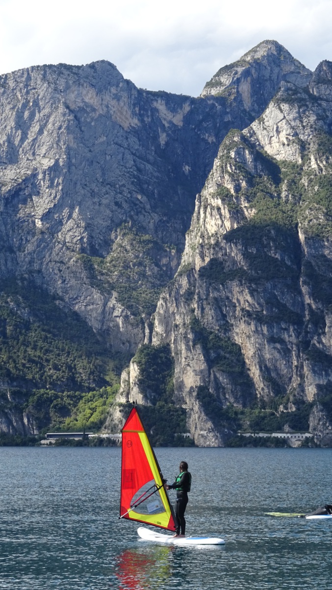 Am letzten Tag fuhren wir an das Nordufer des Gardasees nach Torbole, um dort das Windsurfen, für das der Gardasee so berühmt ist, auszuprobieren. Für viele war es eine neue, aber sehr spannende Erfahrung auf dem Wasser und bei einigen auch vermehrt IM Wasser. Das Spiel mit Wind und Wellen, Brett und Segel forderte uns, aber machte Spaß. Nach kurzer Mittagspause ging es weiter nach Arco, wo ein Teil der Gruppe von der Stadt aus den steilen Berg des Castello di Arco erklomm, während der andere Teil sich an einem Klettersteig versuchten. Ausgerüstet mit Helm, Gurt und Mut erklommen wir steile Felswände. Ein echter Adrenalinkick zum Ende der Studienfahrt. Zum krönenden Abschluss gingen wir alle gemeinsam deliziös italienisch Essen und beendeten den letzten Abend mit einer extra lauten Singstunde auf der Terrasse, bevor wir pünktlich um 0:00 Uhr zu einem kräftigen „Happy Birthday“ anstimmten. Unser gemütliches Beisammensein wurde jedoch von den Nachtwächtern des Campingplatzes gestört und somit gingen wir alle natürlich SOFORT ins Bett.