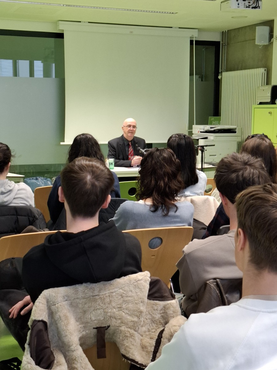 Am 10.12.2025 besuchte Norbert Sachse (*1953) zusammen mit seiner Frau die Basiskurse Geschichte (K2) auf Einladung von Frau Schweigert und Herrn Rühl. Der DDR-Zeitzeuge las nach einer kurzen Vorstellung aus seinem Buch „Die Akte S. Fünf Jahre in den Mühlen des MfS.“ vor, berichtete danach noch aus seinem Leben und beantwortete etliche SchülerInnen-Fragen.
