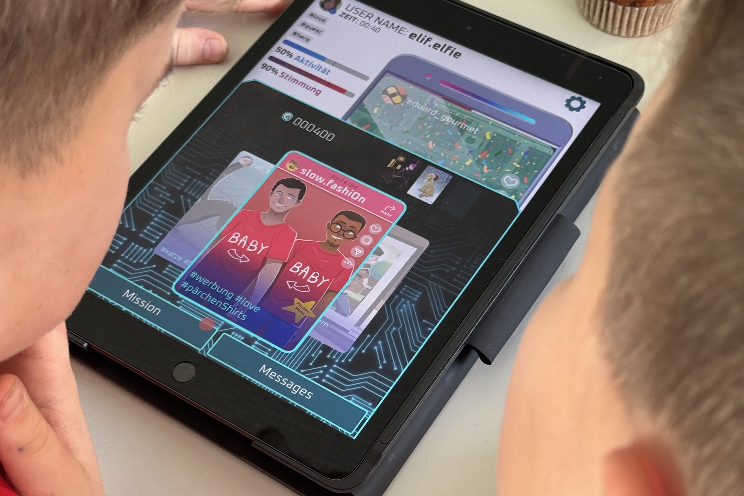 Das Spiel führte unseren Schüler*innen auf spannende Weise vor Augen, was in den eigenen Apps abgeht und wie Inhalte gesteuert werden. Diese Einsichten erlauben es in Zukunft, die eigene Mediennutzung und den eigenen Feed kritischer zu beleuchten.