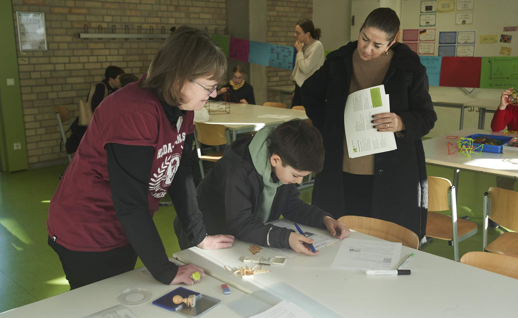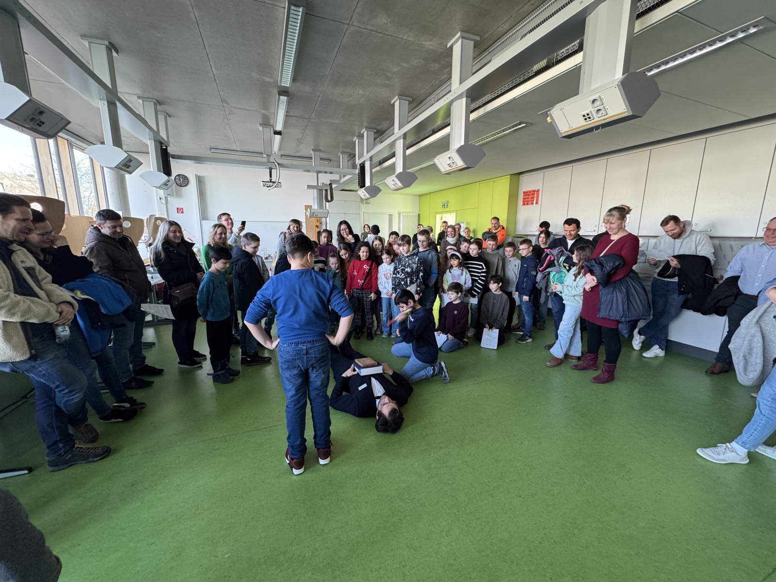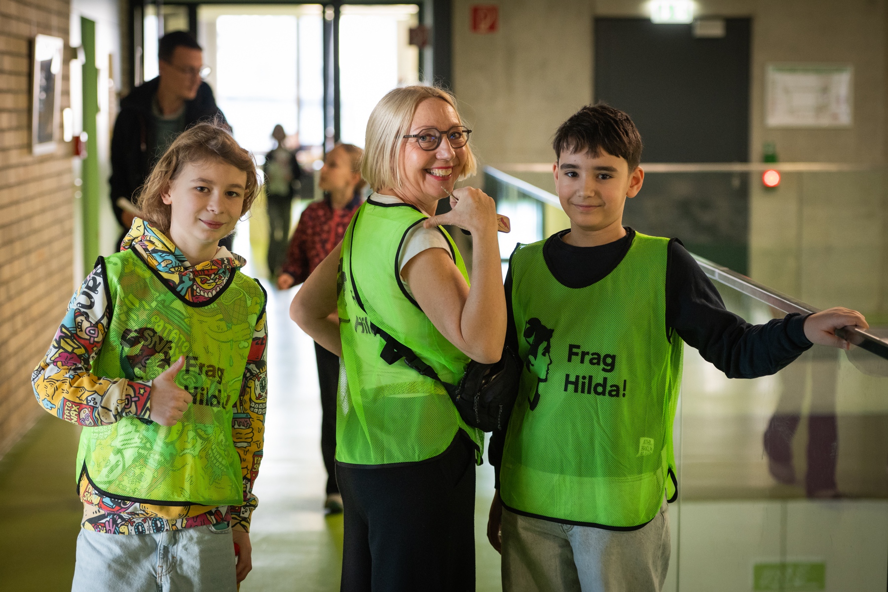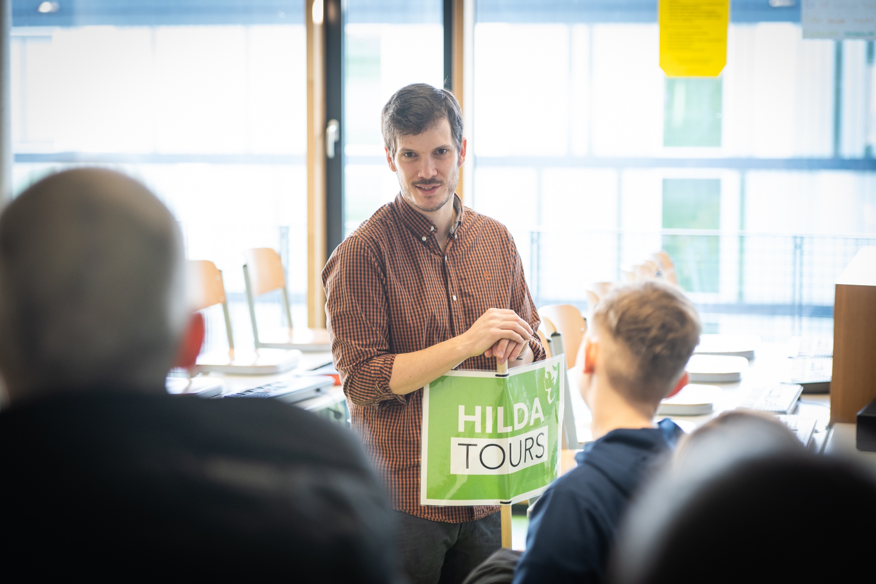 Am Samstag, 6. Februar 2026 öffneten wir am Hilda-Gymnasium nicht nur eine, sondern viele Türen, um interessierten Eltern und ihren Kindern in der 4. Klasse unsere Schule vorzustellen. Alle Schulfächer präsentierten an Informationsständen in den Klassenzimmern sowie Fachräumen, was sie zu bieten haben. Und das ist einiges! Denn unser Unterricht ist vielfältig, digital, praxisnah und findet auch außerhalb des Klassenzimmers statt. Viele Eltern nutzten die Chance, mit Lehrer*innen ins Gespräch zu kommen. Auch viele engagierte Schüler*innen beantworteten die Fragen der Gäste. Neben den Fachinformationen gab es auch viel Spaß für die Grundschüler*innen. Sie konnten auf die Jagd nach Hilda-Stempeln gehen und spielerisch unsere Fächer, das Gebäude sowie viele Schüler*innen und Lehrer*innen kennen lernen. Besonders beliebt ist die Hilda-Sporterlebniswelt in der Berta-Benz-Sporthalle.