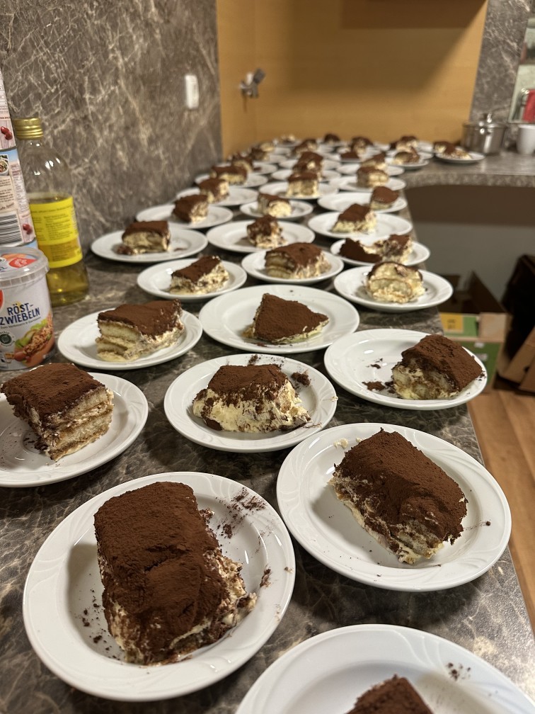 Anschließend bezogen wir unsere Hütte, das Selbstversorgerhaus Schlegel in Gunzesried. Selbstversorgung? – Richtig gehört: In dieser Woche gab es keinen Catering-Service – wir waren die Köche! Vom Frühstück bis zum Abendessen wurde geschnippelt, gebraten und abgewaschen. Ein kulinarisches Highlight war definitiv das Tiramisu am Donnerstag, das von einer mutigen Küchencrew für die gesamte 40-köpfige Mannschaft zubereitet wurde.